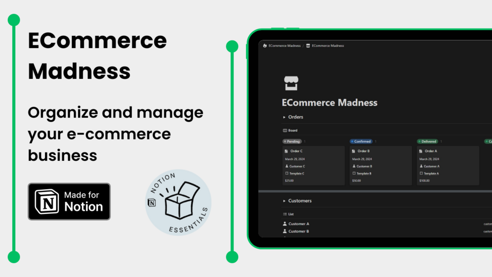 With this Notion template, track and manage your ECommerce business as best as possible.